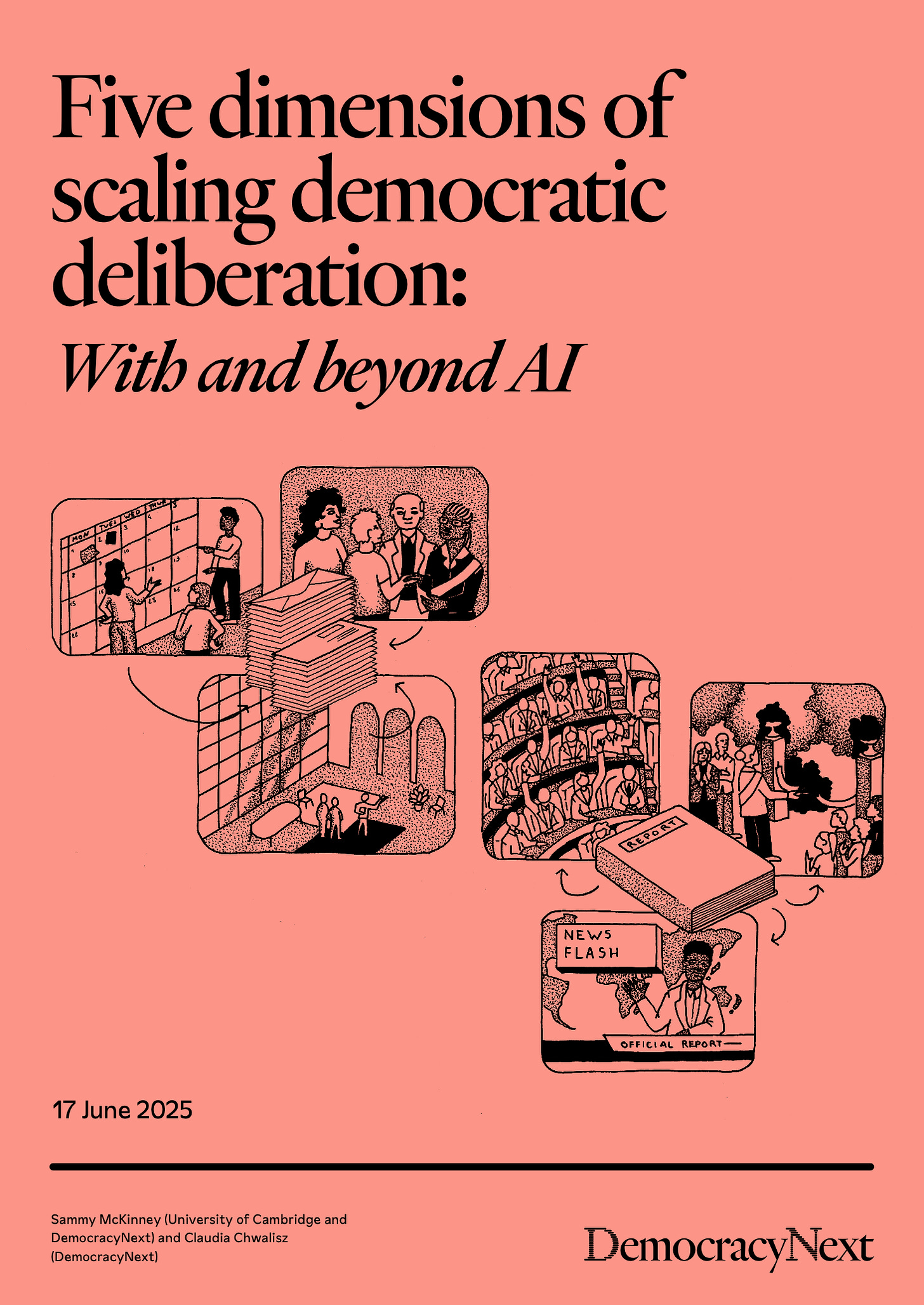 Thanks to all of you who joined us to hear Sammy McKinney (AI and Deliberation Fellow at DemocracyNext and PhD student at the University of Cambridge), and Claudia Chwalisz (Founder and CEO of DemocracyNext) present their arguments, and hear sharp and rich reflections from Oliver Escobar (University of Edinburgh), Kyle Redman (AI and Democracy Foundation), and Manon Revel (Meta).